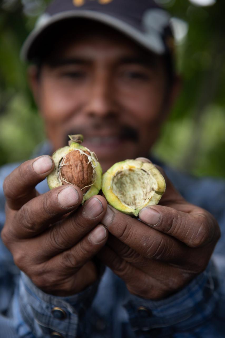 El árbol florea en marzo y a partir de ahí comienza a crecer un fruto que a simple vista parece un ingrediente más. La parte de afuera no se come, es amarga. En el corazón hay una esfera y al abrirla ahí están: las nueces de castilla.